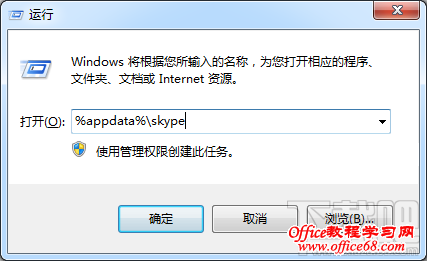 1、首先,点击"开始——运行"并回车,然后键入"%appdata%skype"并点击回车。(不含引号)