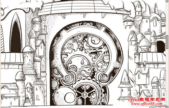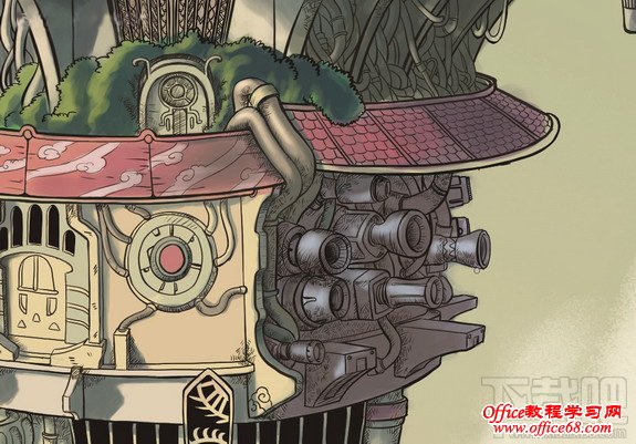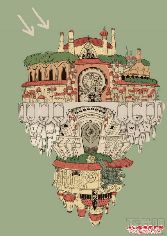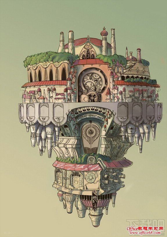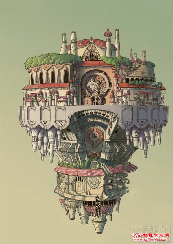 图9 10.用细小的笔将下部分的细节勾画出来。增加天空的颜色变化。