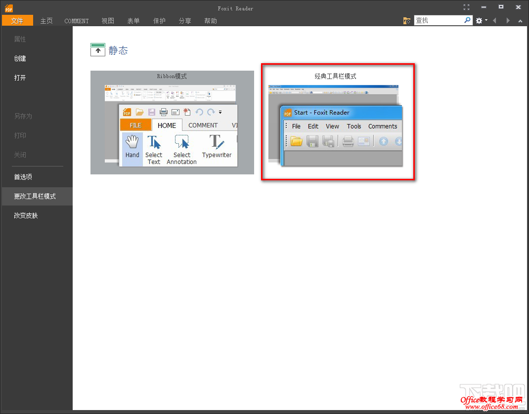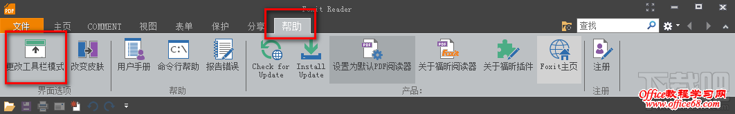 福昕pdf阅读器是一款完全免费的PDF阅读器,由于福昕pdf阅读器体积小不占空间,运行速度快,而且功能很强大,深受广大网友喜欢。现在最新版本的福昕pdf阅读器可能有好一部分用户还不习惯,那如何切换回经典版呢?小编今天就教大家福昕pdf阅读器如何切换成经典版。 1、首先我们打开福昕pdf阅读器软件界面: 选择帮助==》然后选择更改工具栏模式