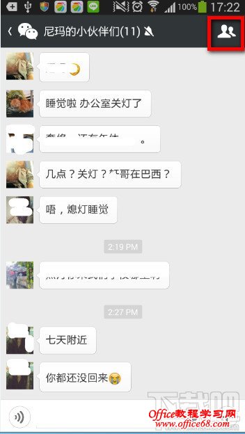 2:看到右上角有一个两人头像重叠一起的。如果我们是一对一的聊天室是一个人头像的。这里是两个人。点击