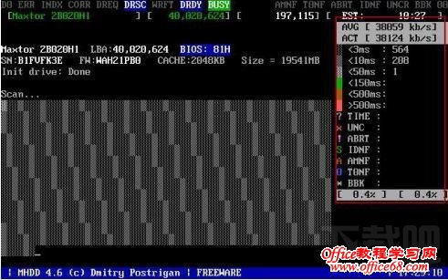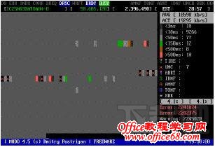 6、MHDD扫描技巧: 扫描过程中按方向键右键是快进,按左键是快退。按ESC键是停止扫描。扫描过程中出现灰色:右侧从向向下数第三个的颜色,当出现这个区块时,说明硬盘读取到这里时比较耗时,问题不大。扫描过程中出现绿色和褐色:说明硬盘读取到这里时,读取数据异常,但还没有到产生坏道的地步,还是可以用的,就是有些卡。扫描过程中出现红色:如果出现红色的话,说明硬盘在读取到这里时比较吃力,说明马上就要就要产生坏道了。最好直接把红色表示的扇区直接隔离。经常读取这个扇区的话,可能加快产生坏道。总之,最好出现绿、褐和红色时最好直接把这三个颜色的扇区都隔离了。如果硬盘出现大量的这些东西,那么此硬盘已经半废了,可以考虑换个新的硬盘了。扫描过程中出现红叉:这是已经出现坏道了,有几个或者不多的话,可以考虑在重新分区时屏闭这几个扇区不在读取。有好多个话,最好直接换硬盘吧。不然到时忽然出现问题,连数据都弄不出来都有可能。扫描过程中出现大量!或者?:判断是否在选择硬盘那里选择错了?选成光驱了?最少我有时选错就这样。可是有人说低格硬盘可以救上一救,这个可能考虑一下,如果有时间,想用二十多个小时去低格,而且低格过程中不能关机,保持不能断电,而且一直保持正常运行,不能停止的话,可以试试。不过我建议最好别弄,就算是电脑高手,使用低格成功的几率也不是很高。自认为不是高手的话,只是想想就行了。
