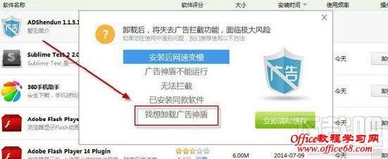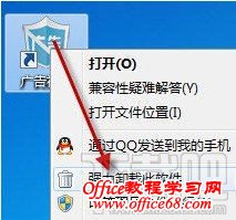 如果你电脑上安装了360等软件管理工具,那么只要在桌面上右键图标,选择强力卸载此软件即可。 勾选我想卸载广告神盾。