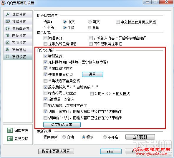 qq五笔输入法是腾讯公司继QQ拼音输入法之后,推出的一款界面清爽,功能强大的五笔输入法软件,现在还在用五笔输入法的朋友不妨试试这款qq五笔输入法。但是有一些朋友是对QQ五笔输入法自定义功能设置不太了解,现在小编就为大家详解QQ五笔输入法自定义功能。 QQ五笔输入法自定义功能详解: