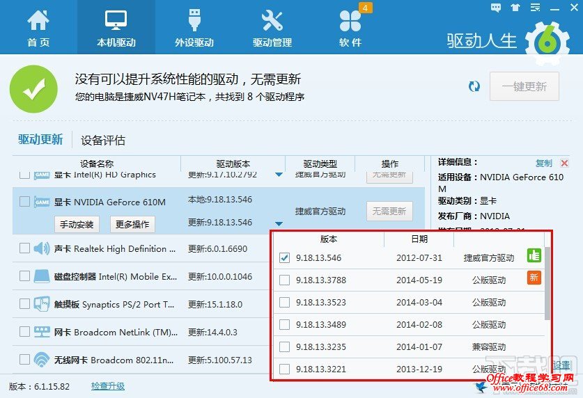 驱动人生的驱动更新有一大特点,就是会根据你的电脑配置来给你匹配最适合你的电脑驱动。你可以手动选择你所需要的、适合你的驱动而不是盲目选择最新版。