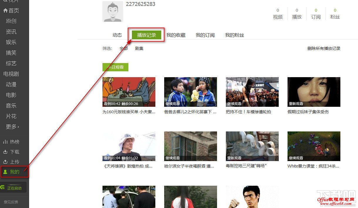 2:方法二:在左边栏“我的”--“播放记录”也是可以看到的。