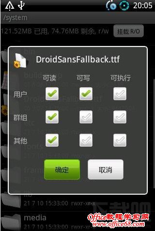 4:按住DroidSansFallback.ttf字体文件,弹出对话框选择权限。改字体的权限