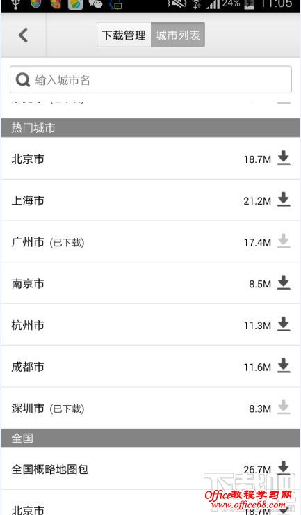 3:选择你自己要的地方,这里有一个城市一个城市的选择。也可以是整一个省份的选择的。