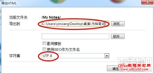 1、选择为知导出为html,选择UTF-8格式,选择文件夹;