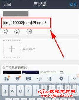 4:输入自己想发的说说,然后在下面输入代码:[em]e10002[/em]iPhone 6,并发布,之后即可看到iPhone6小尾巴