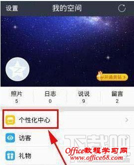 QQ空间怎么显示iphone6尾巴。你还在等iPhone6手机出来,发QQ空间尾巴炫耀iPhone6吗?你慢了,小编不用iPhone就可以直接把QQ空间发的心情尾巴显示是iPhone6了,是不是也是跟小编一样啊?那小编就教教大家,没有拿苹果6也可以显示iPhone6尾巴。 QQ空间显示iphone6尾巴步骤:1:打开手机QQ空间,点击:“我的空间”--“个性化中心”。