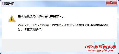 有时候我们开机进行拨号上网时会突然弹出个如下对话框:宽带拨号连接报错711:Cannot load Remote Access Service Connection Manager,这下我们是否没辙了呢,下面我们看看如何解决此类问题. |