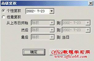 在“任意复权”里可以设置自己希望的复权时间段和方式,即仅对任意一段时间内的除权作任意方式的复权。有三个时间段供您选择。
