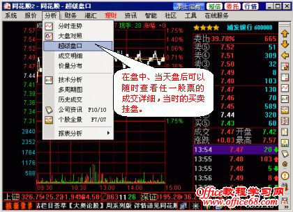 在这里您可以查看任一股票的详细成交状况,我们会将每一笔成交发生时的买卖挂盘变化重现在您的面前。