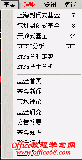 同花顺新增了"基金"菜单,您可以在这里方便的查看上海封闭式基金、深圳封闭式基金、开放式基金的报价表。