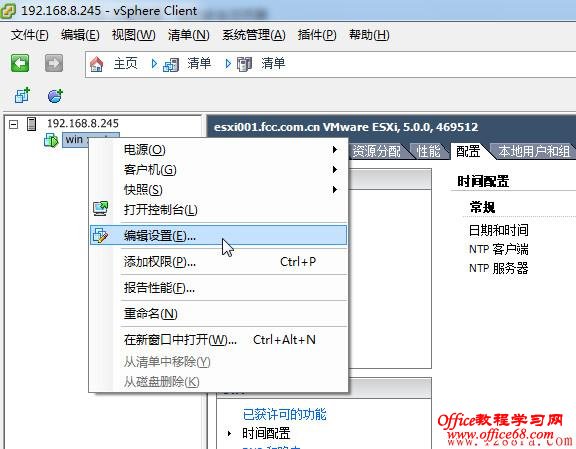 其实在ESXI中我们是可以设置的 首先我们打开vSphere Client登录到ESXI5.0中,右击该虚拟机,选择“编辑设置”