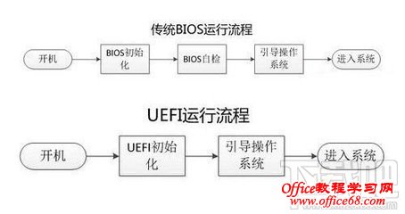 对比采用传统BIOS引导启动方式,UEFI BIOS减少了BIOS自检的步骤,节省了大量的时间,从而加快平台的启动。