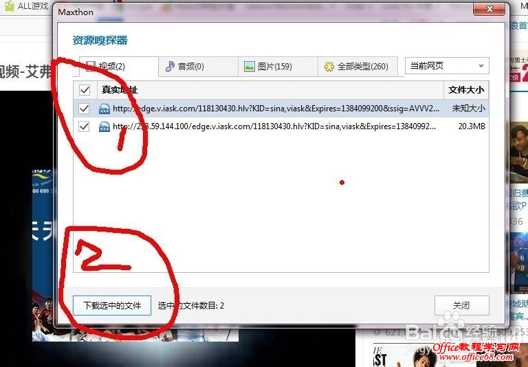 等待嗅探器找到你想下载的视频的下载地址,选中,并且选择下载选中的文件