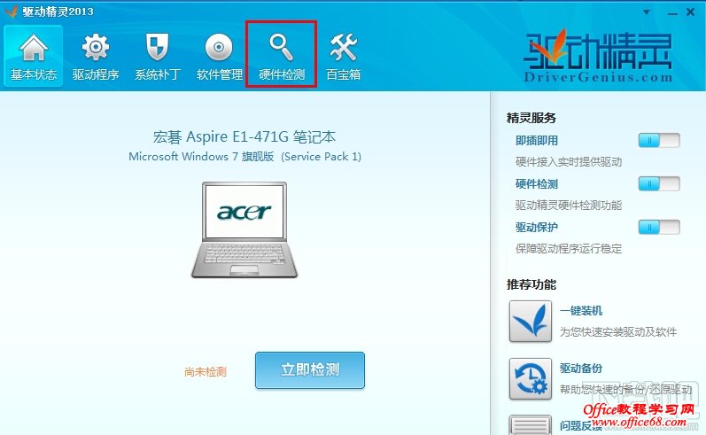 在去电脑城买电脑的时候,一般都会带上检测硬件的工具,检测硬件除了我们自己了解自己电脑的配置外,我们还要避免自己的电脑遭到无良商家私自篡改。检测硬件的软件有非常多,我们装完系统时候也要装驱动,而驱动精灵既能装驱动,也能检测硬件,所以用这款软件非常方便! 驱动精灵检测硬件的方法:1、首先,我们打开驱动精灵,进入软件的主界面。