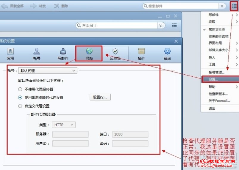 3、由于网络的原因,无法与服务器连接。请检查网络环境是否正确。一般都是由于代理而影响到收发邮件。