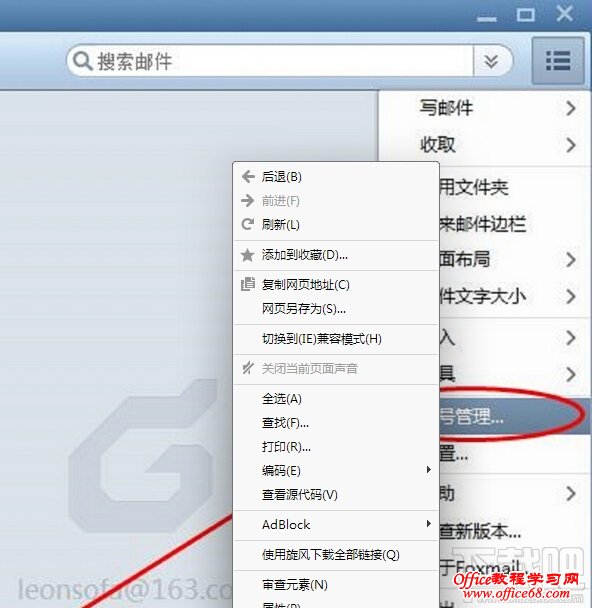 3、进入到Foxmail后,找到右上角三条线按钮,点击按钮后选择“帐号管理”这样选项。