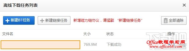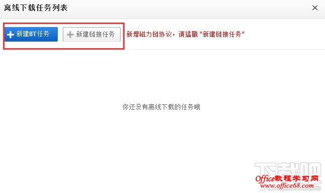 2、在弹出的窗口中选择“新建链接任务”,如果是BT种子文件离线下载需要点击“新建BT任务”。