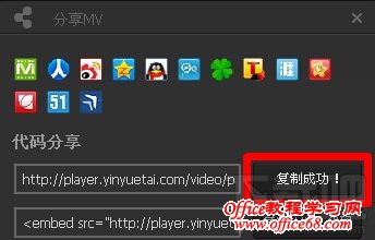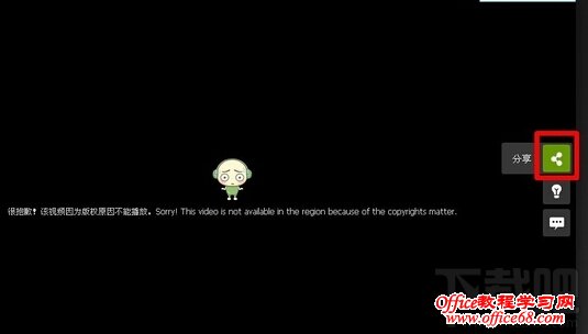 不少朋友都去过音悦台这个网站上看过MV和视频。但是有时候我们会遇到这样的情况,从各种渠道获得想看的视频的音悦台的链接时,粘贴到地址栏后打开,或者是从音悦台直接搜索到的mv进行观看,经常会在播放界面看到一句话:"很抱歉!该视频因为版权原因不能播放。Sorry!This video is not available in this region because of the copyrights matter."太恶心了,解决办法很简单!下面,小编就教大家如何解决音悦台不能看视频的方法吧。 音悦台解决不能看MV的解决方法:1、打开你要想看MV的地址,然后将鼠标移到播放界面右侧的第一个图标(红框位置)上,你会看到“分享”二字。
