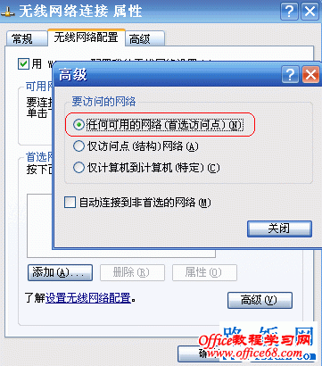 3. “无线网络配置”中点击“高级”,选择“任何可用的网络(首选访问点)”如下图。