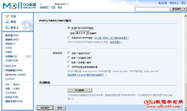 最近添加到Foxmail中的QQ邮箱不能收邮件,单击收取邮件按钮后总是出现“警告”窗口,提示内容为:密码或账号名错误,或者POP服务未开通。请问这是什么原因?