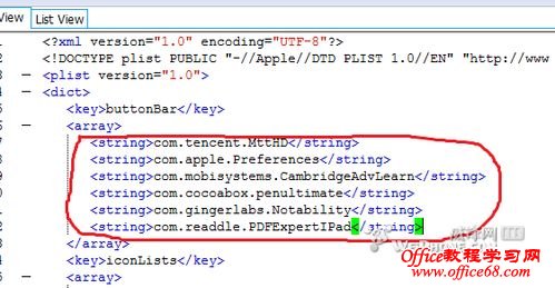 第二,在右边窗口点一下“Path”,让文件按名称排列,然后找到这个文件:Library/SpringBoard/IconState.plist双击后打开,你会看到类似这样的画面。被红圈圈起来的就是被摆在iPad的Dock栏的6个固定程序了。