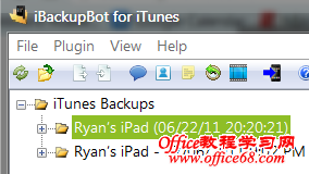 第一,下载iBackupBot并安装,进入iTunes,连上iPad,右键点击左侧栏的“XX的iPad”,选择备份,打开iBackupBot,在左边选择刚刚执行的备份。