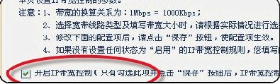 2、开启IP带宽控制 在路由器设置菜单中找到IP带宽控制选项。以水星MR300无线路由器为例,一定要勾选“开启IP带宽控制”才有效。某些无线路由器则在开启IP带宽控制之后,需重启路由器才能生效。根据需要填写带宽类型及带宽大小。