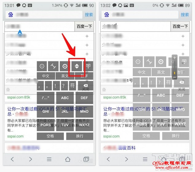 点按后上下拖动调节透明度。实际上,当键盘存在时,如果长时间未进行输入操作,键盘会自动变淡,此时如果有输入需要,点击键盘区域即可,如果没有输入需要,在键盘以外区域滑动浏览页面也不会相互干扰。
