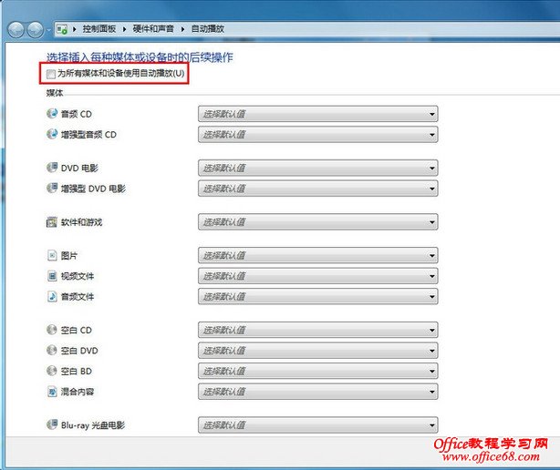 还可以把所有的自动播放都禁用,把【为所有媒体和设备使用自动播放】的“√”去掉即可