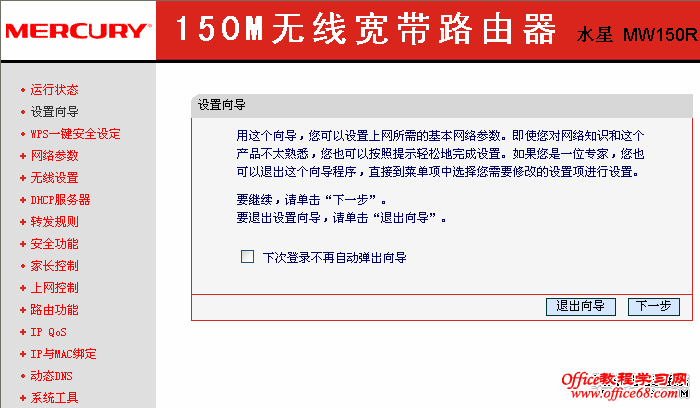 下面我们就介绍一下mercury无线路由器设置,文中以MW150R无线路由器为示例。如果路由器之前被设置过的请复位路由器后按教程操作。
