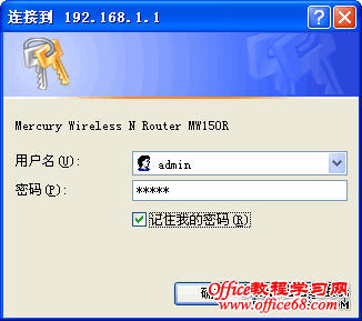 这说明设备还未安装好,请按照下列顺序检查: a)硬件连接是否正确? 设备面板上对应局域网端口的LAN状态指示灯(1/2/3/4)和您计算机上的网卡灯必须亮。 b)设备的IP地址是否为默认的值192.168.1.1? 如果不确定设备是否为默认的IP地址192.168.1.1,您可以按照2.2节所述的复位方法,将设备恢复为出厂默认设置。 c)您的计算机的TCP/IP设置是否正确? 如果设备的IP地址为192.168.1.1, 那么在手动配置计算机IP地址时,必须为192.168.1.x(X 是2 到254之间的任意整数)。 第三、mercury无线路由器设置 开启IE浏览器程序,在地址栏中输入“http://192.168.1.1”,回车确认后您将会看到下图所示登录界面,在登录对话框中输用户名和密码(出厂设置默认均为“admin”),单击“确定”按钮。