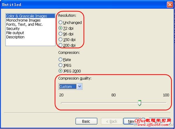 由于不同类别的PDF文档中夹杂有不同种类的无用信息,我们只要用该工具中提供的选项就可以去除它们。例如,可以去掉原PDF文档私有信息,METADATA等。但要注意,由于在尚没有经验的情况下,我们不能保证一次优化就取得满意结果,因此,在减肥之前最好先对原文件进行备份。 小提示:为了检验压缩前后的效果,可以对压缩前后的某些页面进行抓图比较。以此标准来衡量并调整参数,将其设置到一个合适的范围。 |