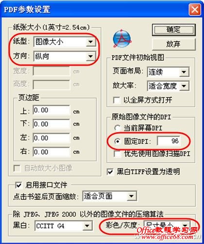 首先,点击金黄色的文件打开按钮,导入上面我们得到的图片系列文件。如果导入的文件顺序排列有问题,可以用工具栏上面的四个箭头按钮来调整顺序。 在“转换结果”一栏下选中“全部存入一个PDF文件”和“使用固定文件/文件夹”,并为输出文件命名。 最后,点击“开始转换”按钮进行转换。转换之后,我们发现,得到的PDF文件为12MB,体积缩小到原来的十分之一,减肥效果十分可观。 小提示:通过“参数设置”按钮,我们还可以进一步对页面的尺寸和图像的分辨率进行设置。这就意味着,它给我们提供了第二次压缩的机会,通过减小图片文件的分辨率,可以进一步减小PDF文件的尺寸(图5)。