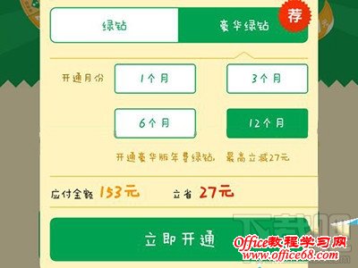 6、若要获得最高的开通充值优惠,只能选择开通QQ绿钻豪华版,以及开通时长为最长的12个月才可以让开通费用省省省。