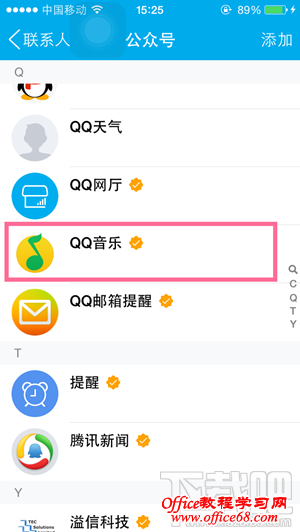 2、如果你已关注了【QQ音乐】公众号,可通过搜索找到QQ音乐公众号,如果没有关注可先通过搜索加关注。