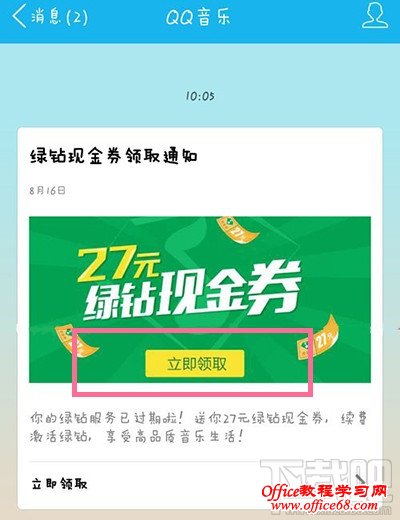 4、领取QQ绿钻现金券即进入使用方法,点击屏幕中间的【立即使用】,从这里开通QQ绿钻可获得最高优惠。