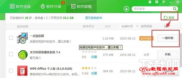 3.点击“刷新”,再点“一键卸载”,如图3所示