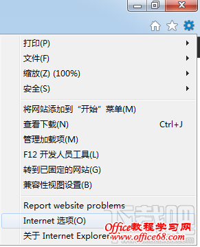 点击右上角的齿轮图标,选择“Internet选项”。