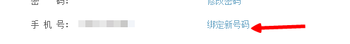 4、进入设置以后,点击手机号后面的【绑定新号码】。