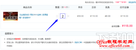 4、进入结算界面。这里我买两张IMax电影票,才118。在影院那里买都110了!所以买电影票团购才最划算。按“提交订单,去支付”