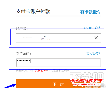 6、自动跳转到支付宝的支付中心。填入账号和支付密码,确定支付。