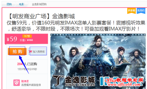 2. 找到要购买的电影票,点击后面的【抢购】。