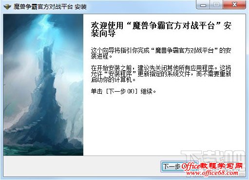 魔兽争霸官方对战平台安装教程1、开始安装 欢迎使用“魔兽争霸官方对战平台”,点击“下一步”继续