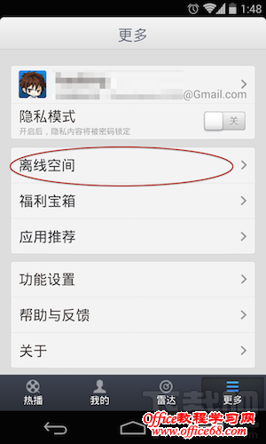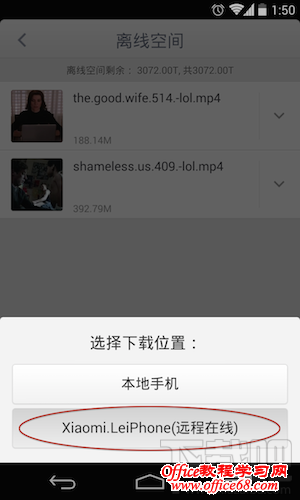 3.在迅雷云播App中选择底部菜单中的“更多→离线空间”,选择离线空间中的一部影片,下载地址选择“小米路由器(Xiaomi.LeiPhone)”即可。小米路由器工程纪念版赠送1年迅雷白金会员,正式版不得知。