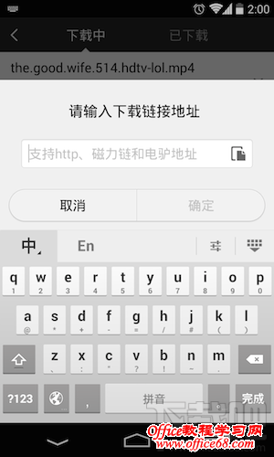 3.将文件或影片的下载地址粘贴到下面的文本框,选择“确定”即可。