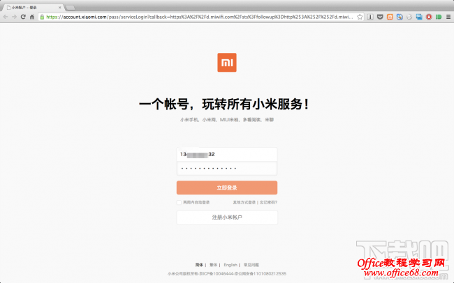 2.在弹出的页面中登陆自己的小米账号。(去注册)